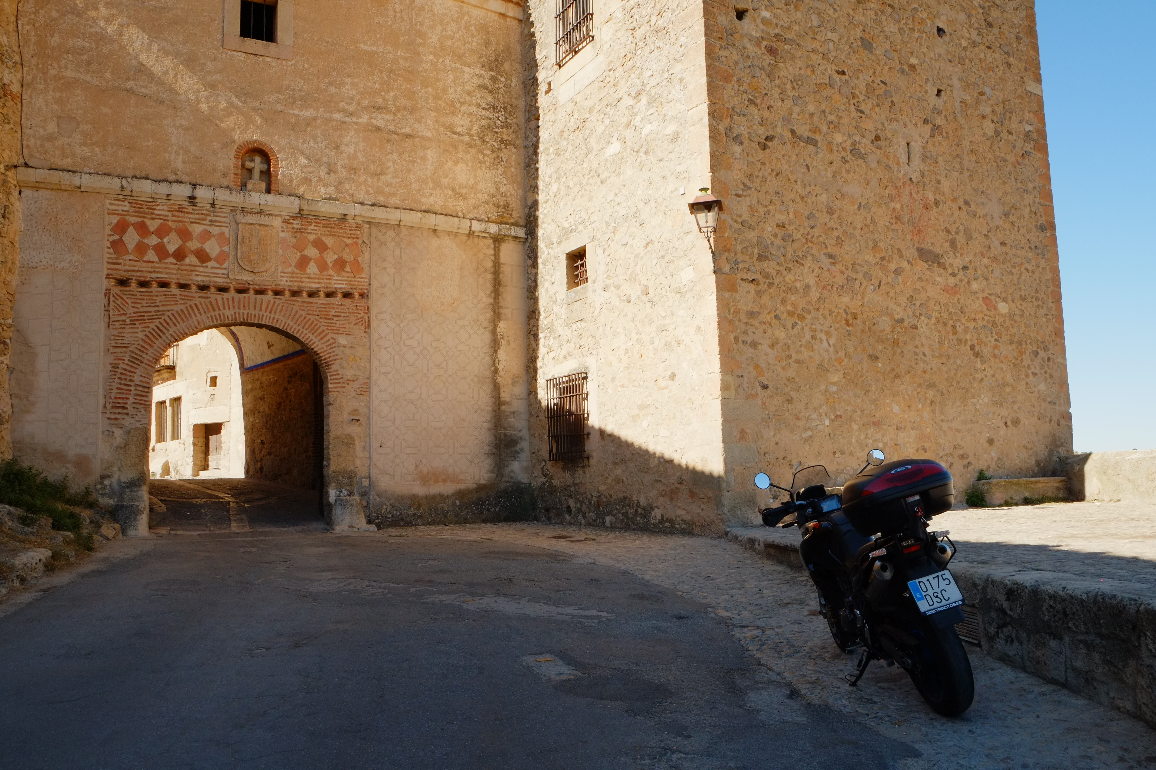 I circled around Segovia to the south and then took the CL-605 heading northwest through the town of Nieva and then continued on a bit further to my first destination for the day, Coca. In this small town stands a one-of-a-kind castle built in Gothic-Mudéjar style with lavish hexagonal turrets. The castle dates from the year 1453 and was built on top of an older fortress.
